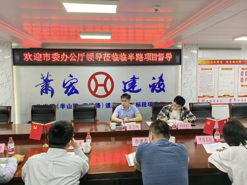 袁思明副主任一行踏勘了項目現(xiàn)場,對項目施工進度、現(xiàn)場管理、安全文明施工措施等方面進行實地調(diào)研。在隨后召開的座談會上,市城投集團傅翼部長圍繞臨半路項目整體建設(shè)情況及后續(xù)施工方案進行匯報,與會各部門針對亞運保通、景觀綠化方案、建設(shè)時序等具體事項進行了探討。
